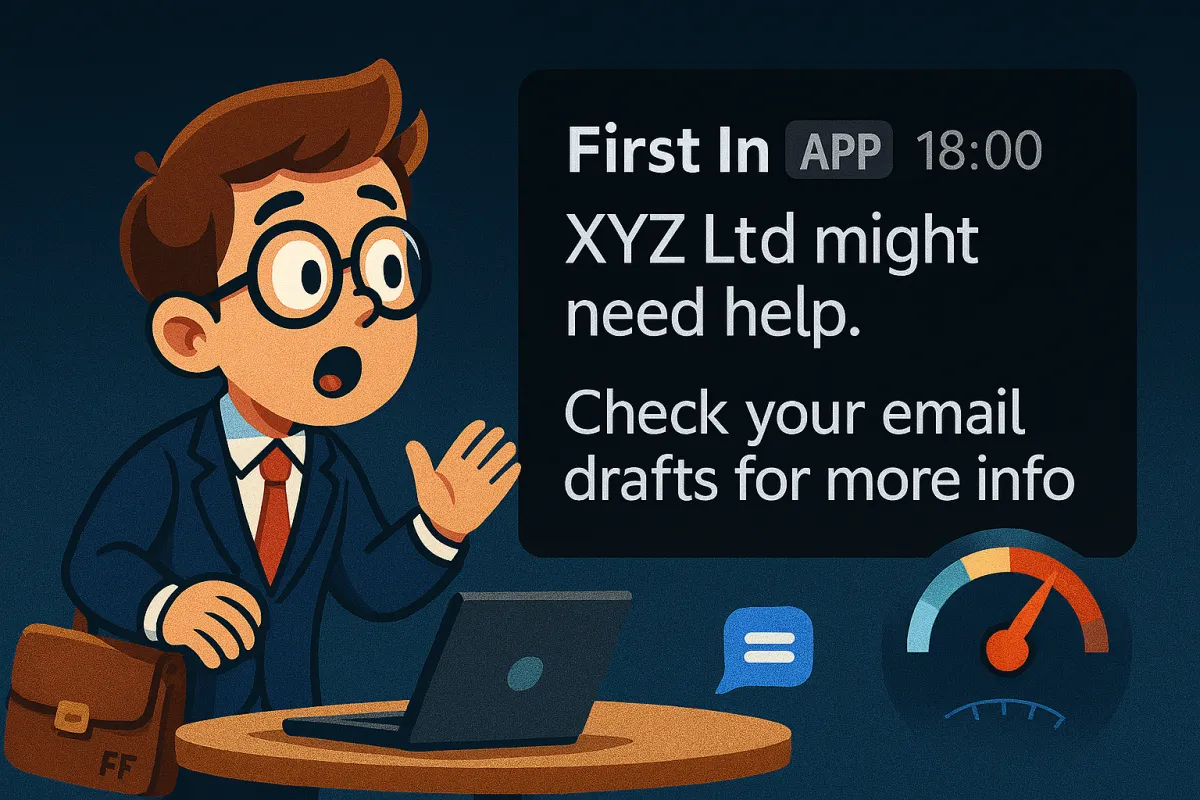 First In monitors Companies House, job boards, and UK directories to identify businesses in YOUR postcodes that need accounting help - then puts you in their inbox before they hit Bark or Google.