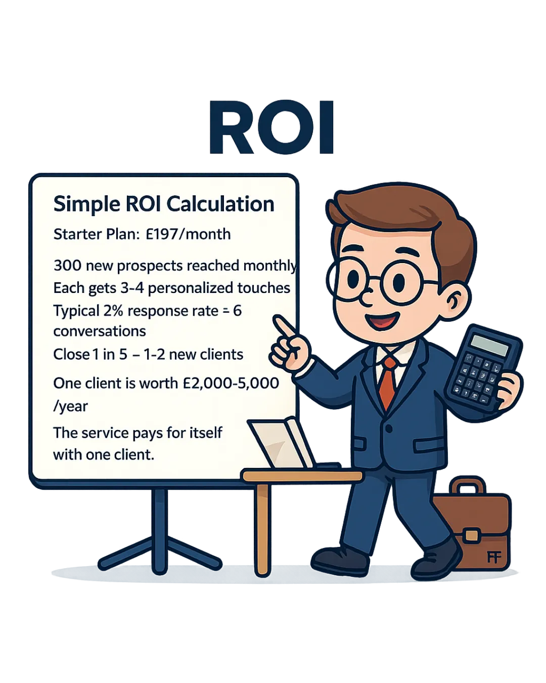 One client is worth £2,000-5,000/year The service pays for itself with one client.