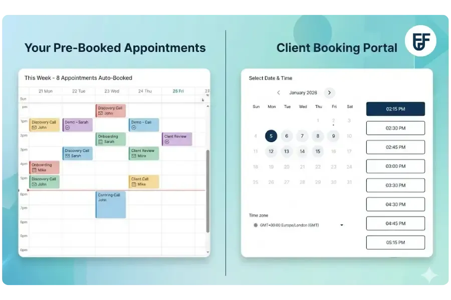 When prospects book directly through your calendar, you reduce scheduling time to a single click.